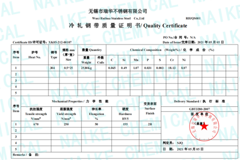 实验室填料的原材料材质报告发表时间:2025-06-26 09:57 对不可避免的市场竞争,为了满足服务于化工企业的需求,公司一直遵循严格的质保体系,坚持以"质量为本、信誉为上"的宗旨,公司生产的实验室填料需质量严格把控好,原材料304和316L都提供材质化验单和材质证明书保证材质。
